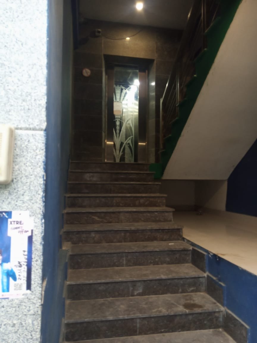 This office is on the 3rd floor of a Ground + 4 floors building. It features a front-facing entrance, lift access, and a modern open hall layout. With tile flooring and a private bathroom, the space is ready for immediate use.