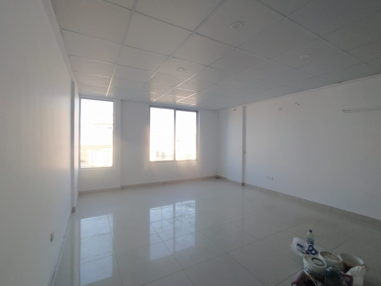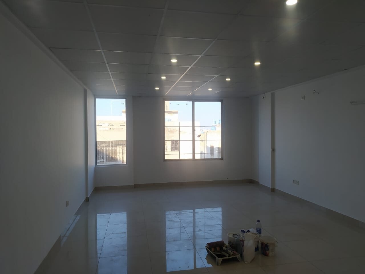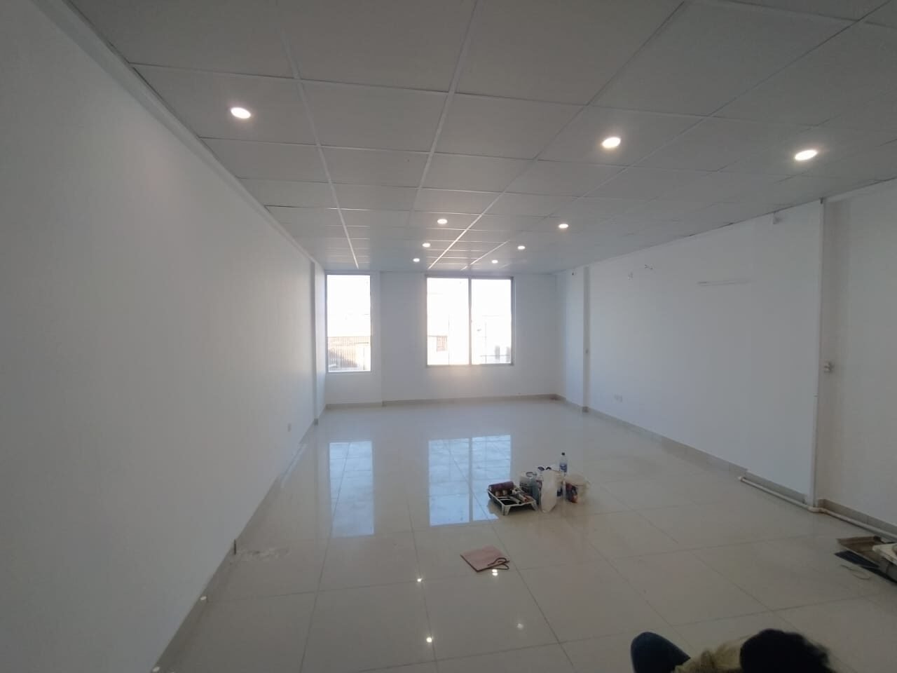 The office covers 590 sq ft on the 4th floor, and a lift ensures smooth access. It includes a spacious open hall, a dedicated bathroom, and tile flooring, all of which create a professional and modern look. Moreover, the road-facing layout brings natural light into the office, which helps maintain a productive environment.