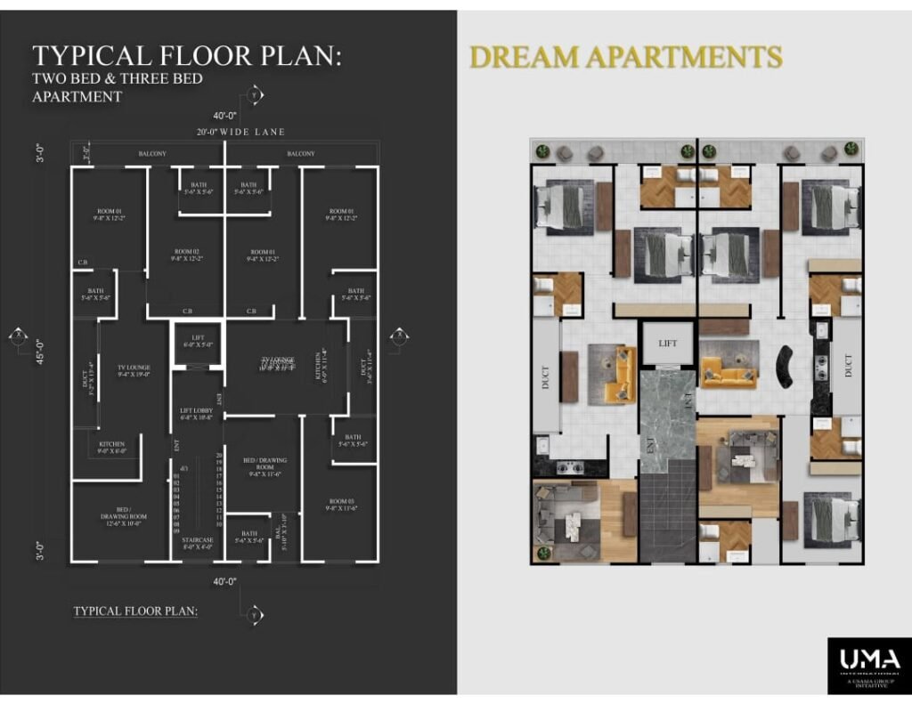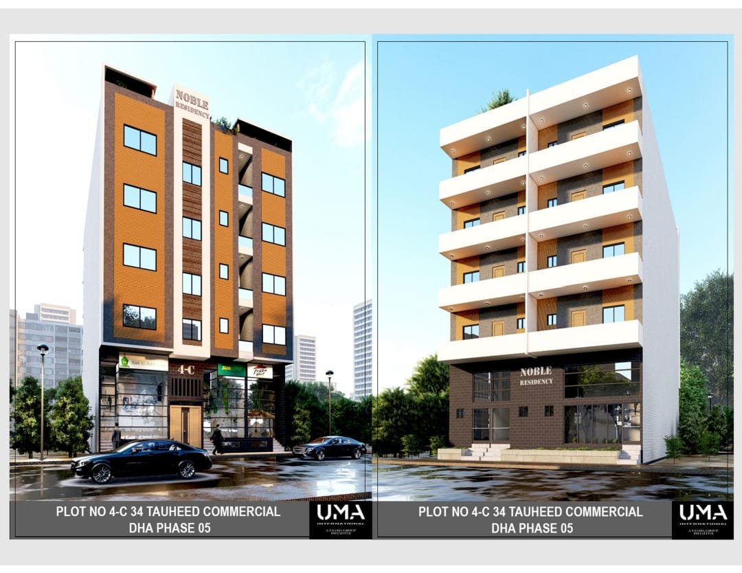 This new project on Plot No. 4C, 34th Street, Tauheed Commercial is redefining modern living and business standards in DHA Karachi. Built on a 200-yard plot with Ground + Basement + 4 Floors, it offers a mix of luxury 2- and 3-bedroom apartments and 16-foot-high showrooms with basements — a perfect blend for investors and end users alike.