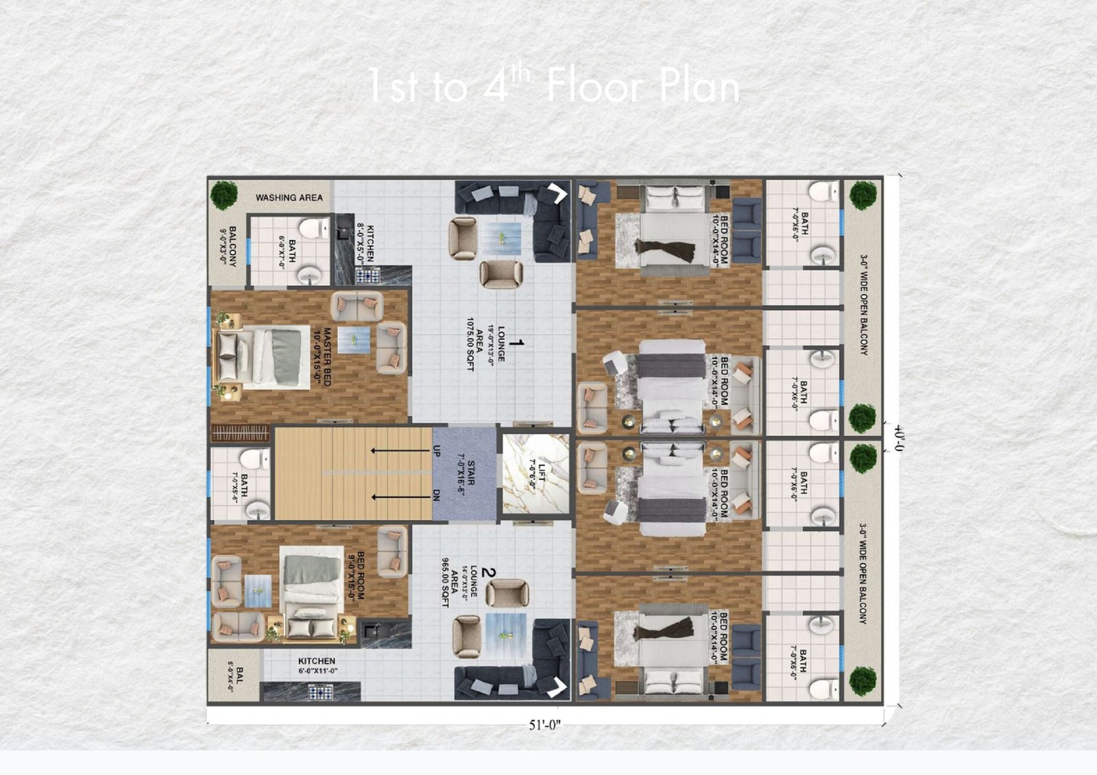 - Sizes: 965 & 1075 square feet