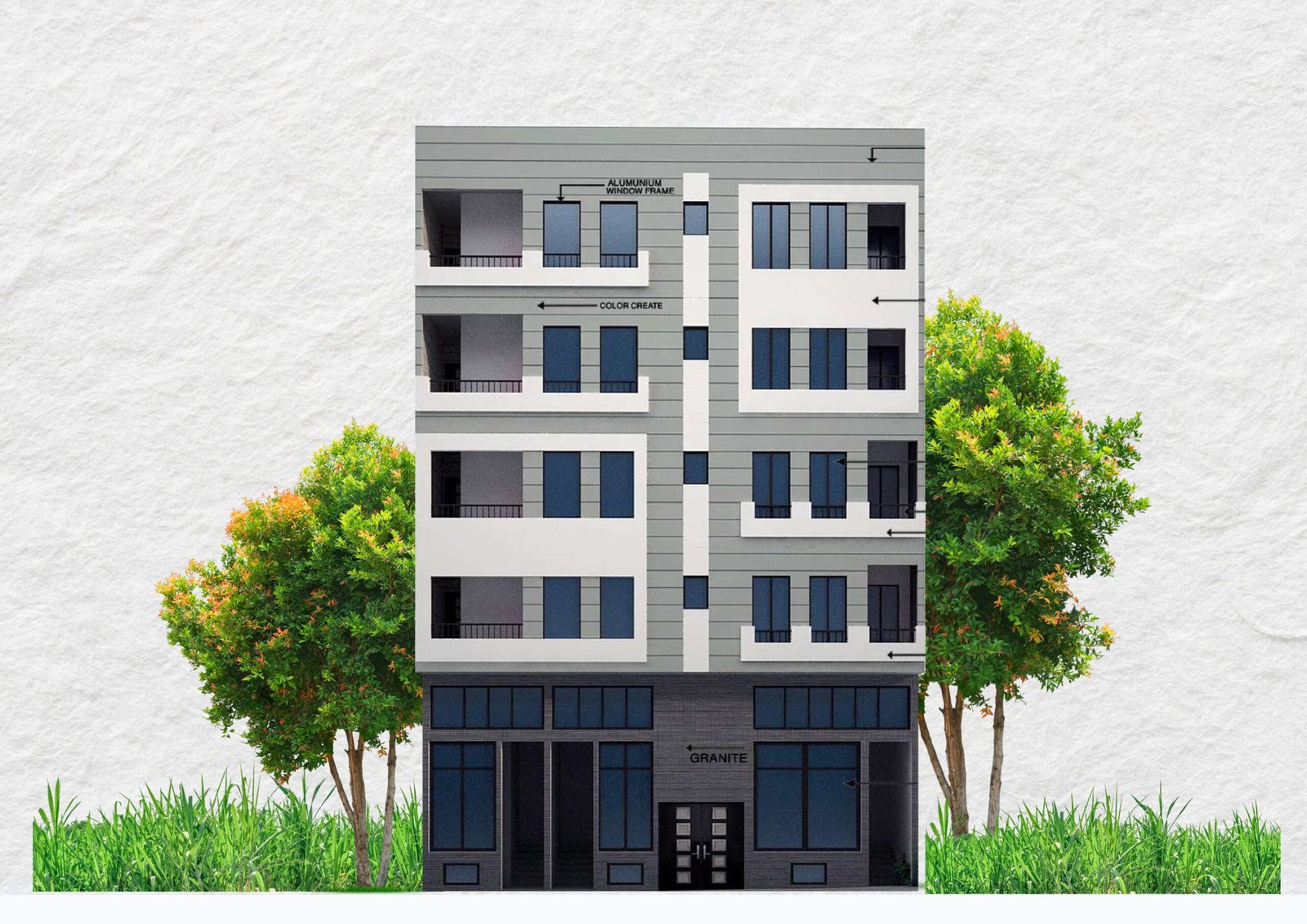 - Ground + Basement + 4 Floors