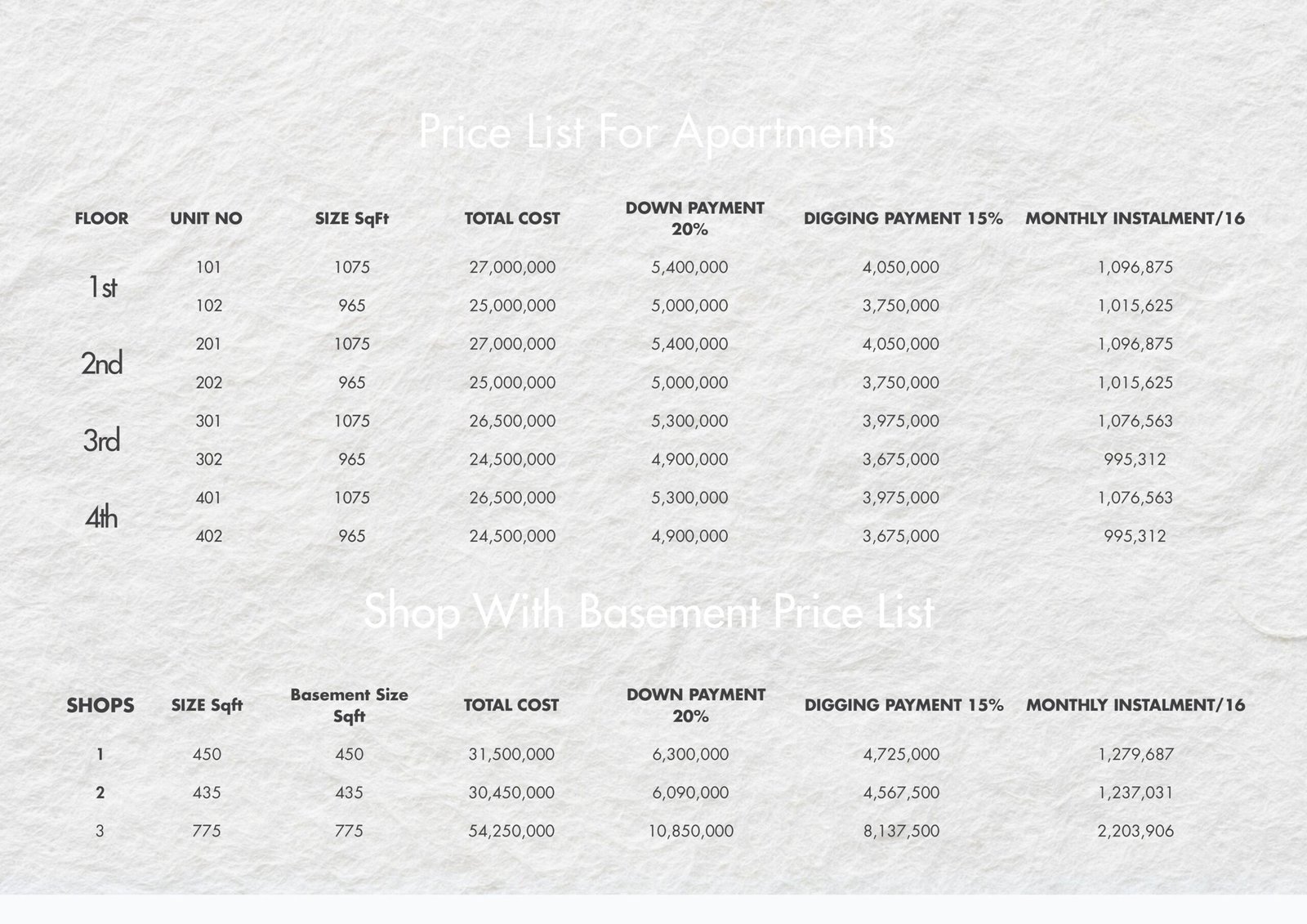 - 2 Apartments per Floor (1st to 4th)