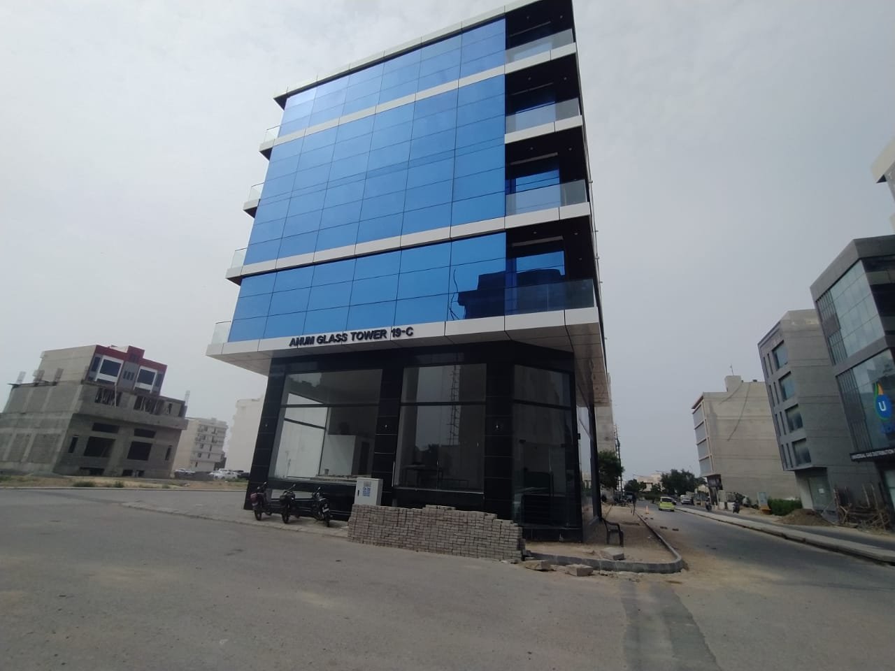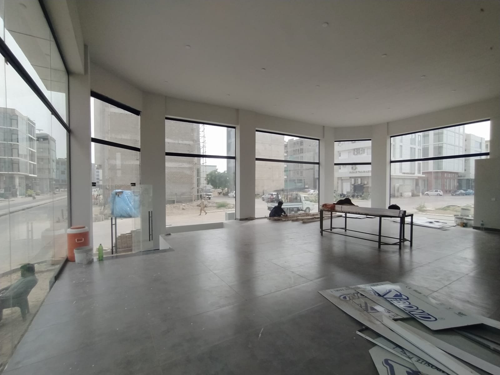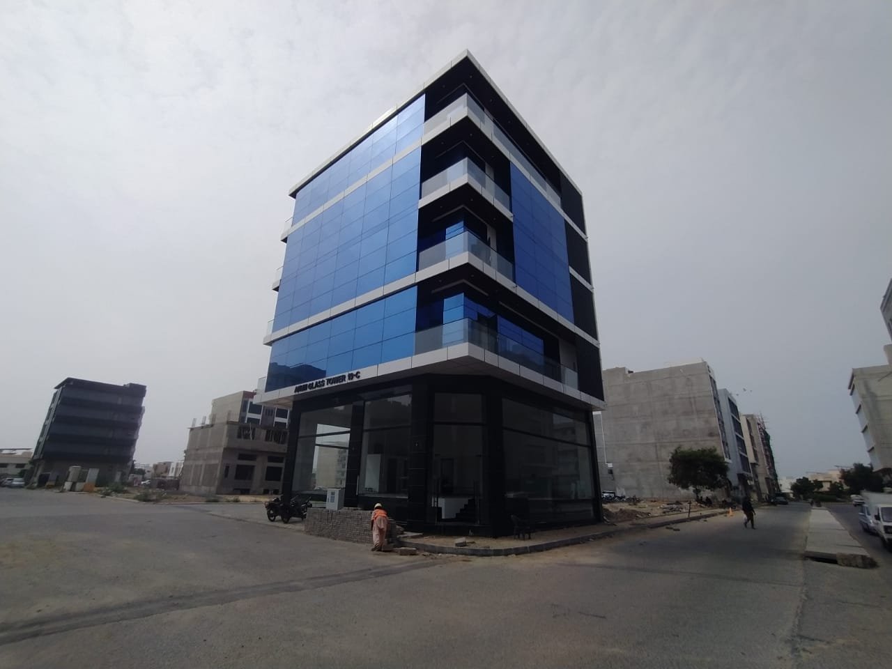 The commercial building for rent in DHA Phase 8 is a modern structure with a sleek glass elevation, enhancing its visual appeal and making it a landmark property. Its 3-side corner location ensures excellent visibility, high footfall, and maximum natural light — all essential for an impactful commercial presence.