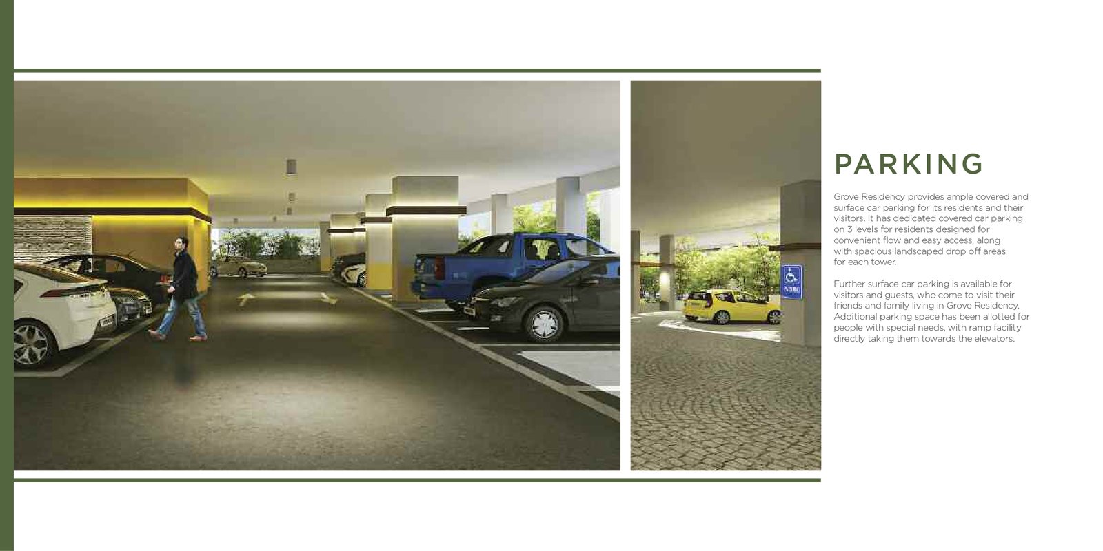 - Wheelchair-friendly parking with ramps connected to elevators
