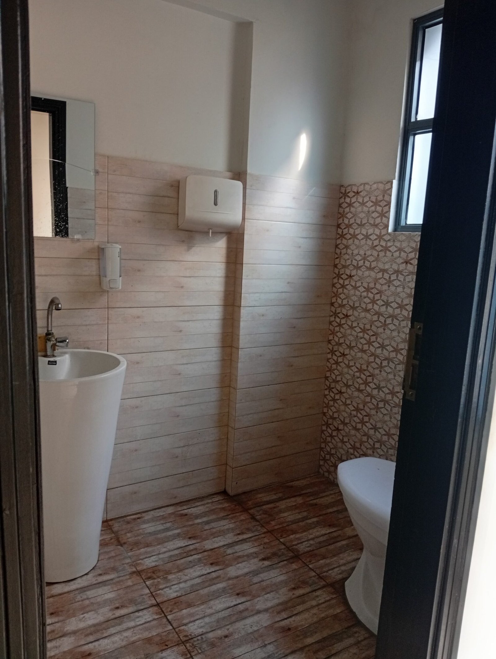 The office itself is open-plan. It comes with tile flooring and an attached bathroom. Whether you need a workspace for a small team or a professional setup, this layout offers flexibility.