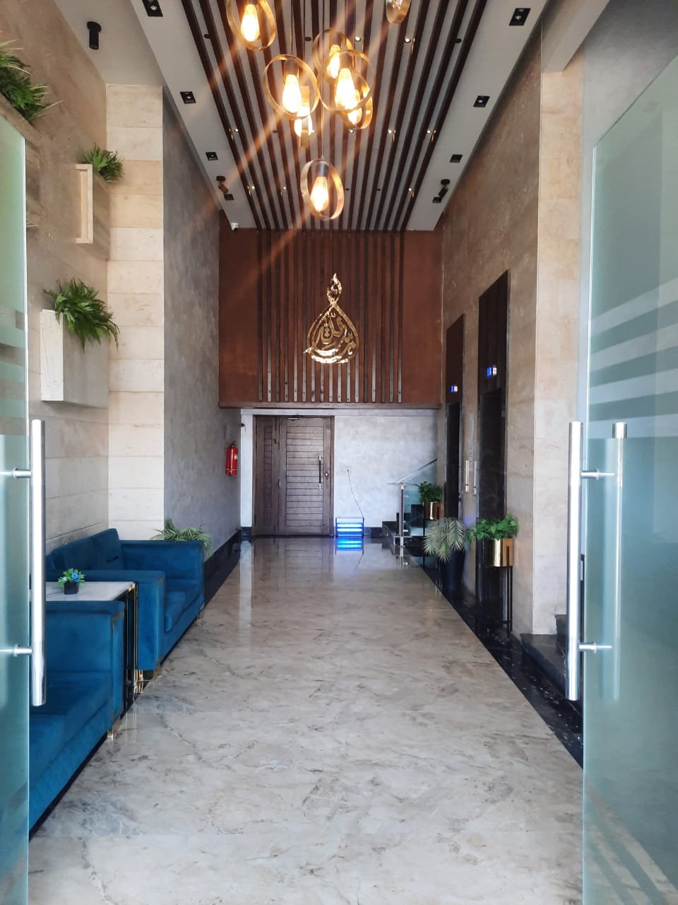 This brand new office for rent in Clifton features tile flooring, a glass elevation, and a modern lift — giving it a sophisticated touch that complements your brand image. The reception lobby creates a professional first impression, ideal for businesses that value presentation.