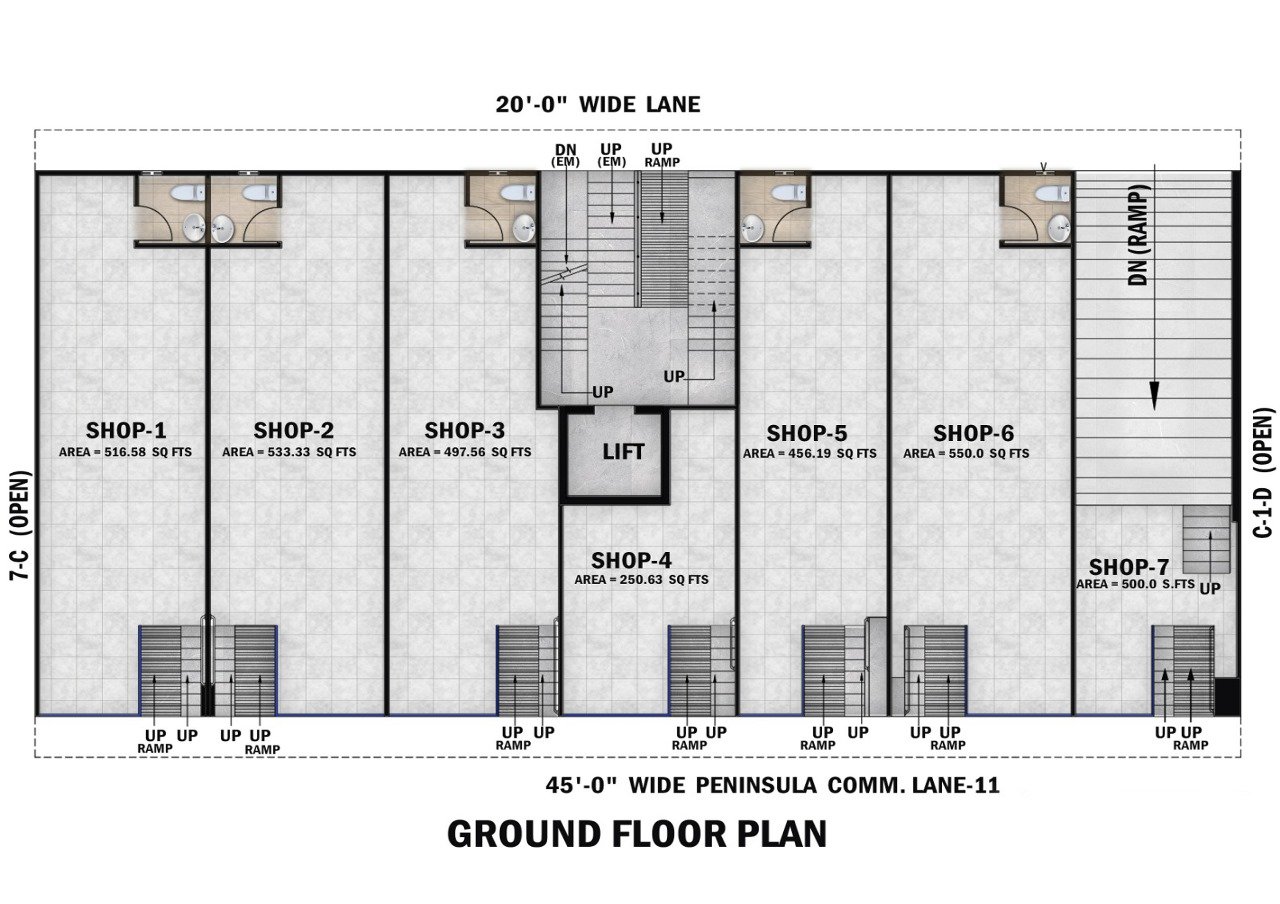 All shops are priced at PKR 70,000 per square foot, offering excellent value considering the location and potential for rental income.